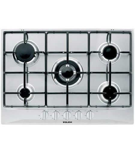 Gaz Glem P5GFXV. Couleur du produit : Noir, Acier inoxydable, Emplacement de l'appareil : Intégré, Largeur de la plaque de cuisson : 70 cm. Certification: CE. Type de commande : Bouton, Position de commande : En haut à l'avant. Largeur : 685 mm, Profondeur : 500 mm, Hauteur : 30 mm ...
