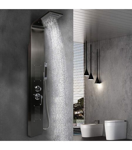 SKECTEN Colonne douche en acier inox 304 avec mitigeur, Panneau douche multifonctionnel 4 fonctions, douche cascade et hydromassante, noir