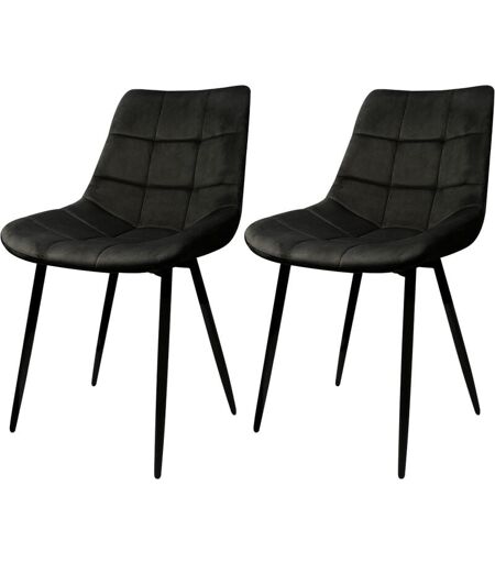 SIFREE Lot de 2 Chaises de salle à manger, Siège moderne chaise à carreaux, rembourrées, surface en velours lisse-charge 120 kg-avec pieds en fer, noir