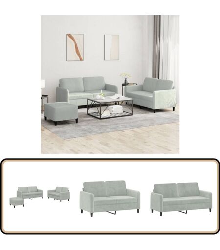 Vidaxl - Ensemble de canapés 3 pcs gris clair velours - Canapé Velours - Canapé Gris - Ensemble Canapé - Salon Moderne - Meubles Living Room