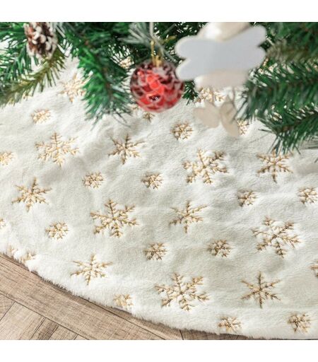 Kartokner - Jupe de sapin de Noël de 36 Pouces/90 cm, forme ronde, Flocons de neige Doré à paillettes, pour décoration de sapin de Noël, décoration