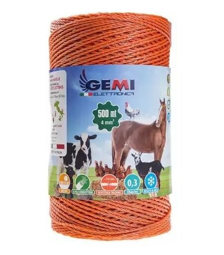 Gemi Elettronica - Fil De Cloture Electrique 500 Mt - 4 Mm² Moutons, Porcs, Bovins, Poulets Et Petits Animaux