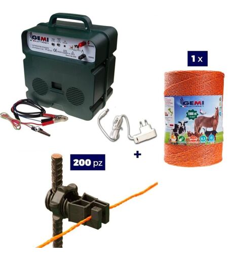 GEMI ELETTRONICA Kit Complet pour Clôture Électrique : 1 x Electrificateur B12 Double Alimentation 12 v / 220 v + 1x Fil 1000 mt 4 Mm² + 200 pcs Isolateur pour