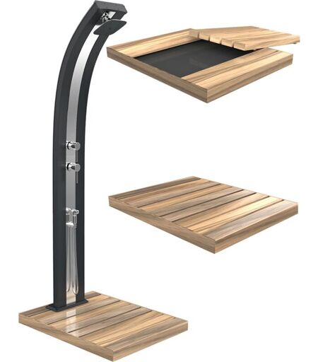 Description générale Receveur de douche en bois Arkema D 106, conçu pour s'intégrer harmonieusement dans tous les espaces extérieurs et intérieurs. Fabriqué en bois d'Okoumé, ce receveur est à la fois esthétique et durable, parfait pour les douches solaires et traditionnelles. Sa conception permet une installation facile et sans travaux de modification structurelle. Spécifications techniques Matériau : Bois d'Okoumé, résistant et hydrofuge Dimensions : 100 x 80 x 6 cm Poids : 10 kg Drainage : Horizontal avec réservoir de collecte des eaux Fabrication : 100% Made in Italy, conforme aux normes CE Compatibilité et accessoires Compatible avec toute la gamme de douches Arkema, notamment : HAPPY ONE HAPPY FIVE HAPPY BEACH BIG HAPPY / BIG HAPPY FIVE JOLLY S SPRING S DADA S - V. TOPLINE Installation Installation facile sans trous dans le sol ni modifications structurelles requises. Peut être installé en accosté ou fixé sur les lamelles. Utilisation Idéal pour une utilisation en extérieur avec ...