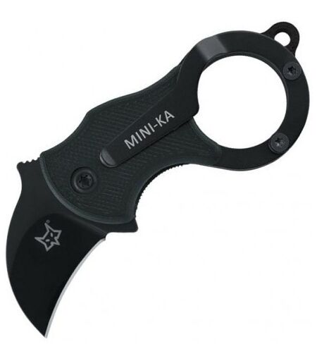 Le Mini Karambit FOX, votre meilleur allié pour vos sorties outdoor Lame acier inoxydable 1.4116 noire : solide et résistante à la corrosion Manche en nylon noir résistant - Longueur : 6cm Anneau sur le manche pour améliorer la prise en main Ouverture manuelle : tirer la lame hors du manche Verrouillage Liner Lock simple : tige d'acier bloquant la lame Porte-clés livré avec le couteau Fabrication italienne FOX ...