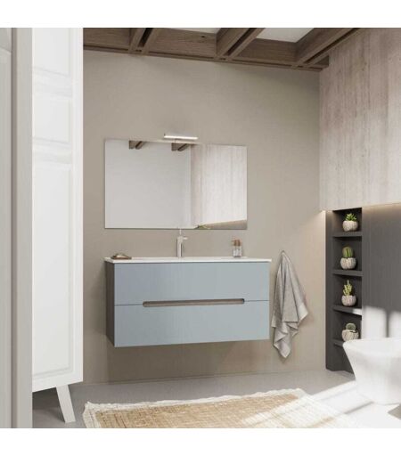 Kiamami Valentina - Meuble De Salle De Bain Couleur Bleu Mat Et Chêne Naturel 100 Cm Magnolia