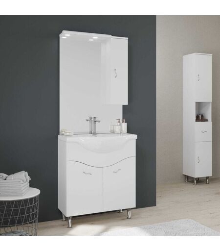 Kiamami Valentina - Armoire De Toilette 75 Cm 2 Portes Et Meuble Haut En Blanc Brillant Série Easy