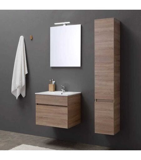 KIAMAMI VALENTINA Meuble De Salle De Bains De 60 Cm Avec Tiroir, Miroir Et Lavabo En Chêne Série Sole