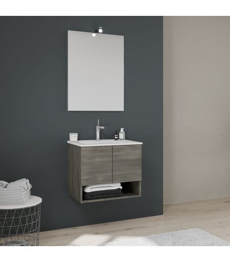 Meuble Suspendu Pour Salle De Bain Avec 2 Portes 60 Cm En Chêne Gris Foncé Venezia