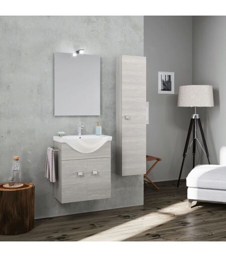 Meuble De Salle De Bain Suspendu 56,5cm Gris Avec Colonne, Lavabo+Miroir Facile