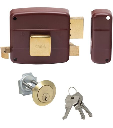 Serrure A appliquer pour le bois. Pêne dormant et pêne. Bouton interne et cylindre externe detaches. Main ...