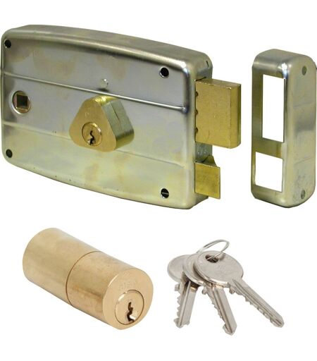 Serrure A appliquer pour le fer. Pêne dormant et pêne demi-tour. Bouton interne et cylindre externe fixe. Peinture ...