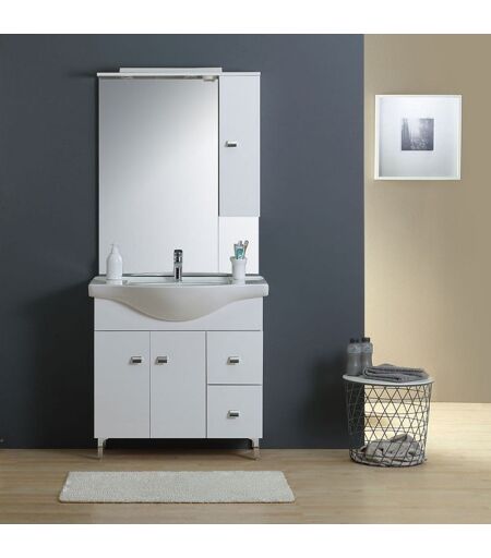Meuble-Lavabo Salle De Bains 86 Cm, Miroir-Armoire Couleur Blanc