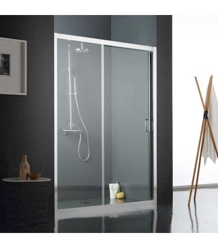 PORTE DE DOUCHE COULISSANTE AVEC UNE PAROI FIXE ET UNE PAROI COULISSANTE Cette série de porte de douche coulissante fait partie de la série Fly, cabines de douche de qualité. Elles sont proposées comme solutions faciles et élégantees à ceux qui ont besoin de fermer un espace de douche. Le produit est fabriqué en sélecionnant des matériaux plus résistants et de qualité : Le verre est trempé 6 mm Le profilé est en aluminium chromé Cette porte de douche est composée d'une paroi fixe et d'une paroi coulissante, toutes les deux en verre trempé et à installation reversible. De plus, elle détient les avantages suivants: coulissement sur coussinets de la porte coulissante et la facilité de déclanchement des verres pour un nettoyage complèt. Afin de permettre une marge d'adaptabilité, la porte de douche en niche a un jeu de réglage de -2 cm. Produit testé de haute qualité avec un avantageux rapport qualité/prix. Société productrice certifiée ISO9001. Receveur de douche non inclus mais ...