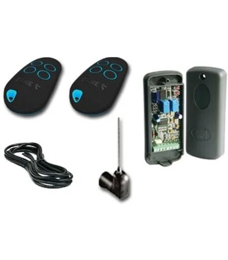 CAME - SYSTÈME RADIO COMPLET À 433,92 MHZ EN 12-24V DC POUR USAGE UNIVERSEL KIT TOP TRA1RD42 8K06RV-00112 - 24 V DC- 1 RE432M RÉCEPTEUR EXTERNE BICANAL 12-24V AC/DC À CODAGE TOP-TAM-ATOMO D, TWIN- 2 806TS-0270 TOP44RBN ÉMETTEURS CODE TOURNANT QUATRE CANAUX- 1 TOP-A433N ANTENNE- 1 TOP-RG58 CÂBLE POUR BRANCHEMENT ANTENNE ...