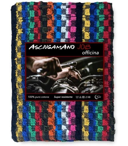 « Serviettes JOB » L'ensemble est composé de 6 serviettes 'multicolores' en éponge de coton 100% de bonne consistance.Il est emballé dans une enveloppe avec 6 serviettes assorties dans les couleurs.Ils sont idéaux pour une utilisation quotidienne parce qu'ils sèchent vraiment bien, adaptés aux ateliers ou aux endroits où les mains sont souvent sales et, grâce aux couleurs foncées, ils cachent les taches.La serviette est produite en une seule mesure cm. 50x70.Dotés d'un sac WASHY à utiliser lors du lavage à la machine, car il préserve la qualité des serviettes. ...