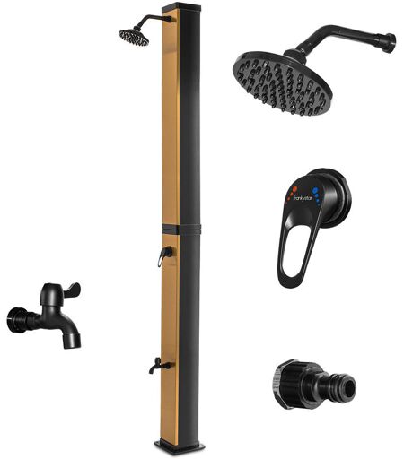 FRANKYSTAR Surya Gold - Douche de jardin solaire 40L en pvc. Douche à chauffage solaire Douche extérieure avec robinetterie en acier et pommeau de douche
