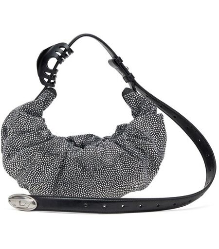Diesel - Petit sac hobo froissé en denim à cristaux - Sacs d'Épaule - Femme - Noir UNI