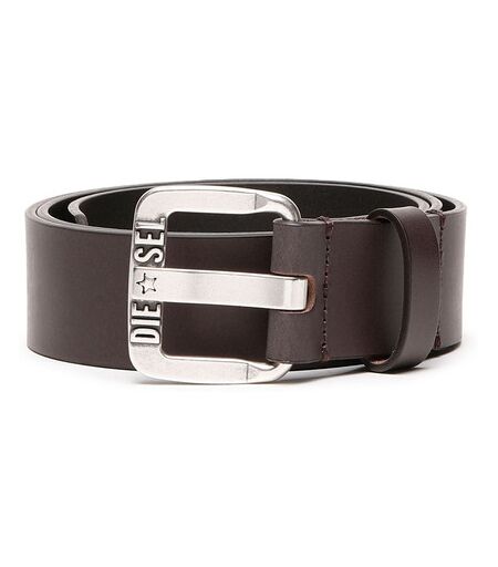 Cette ceinture pour Homme est confectionnée en cuir lisse. Sa boucle en métal est ornée du lettrage Diesel et d'une étoile gravée sur la broche. ...