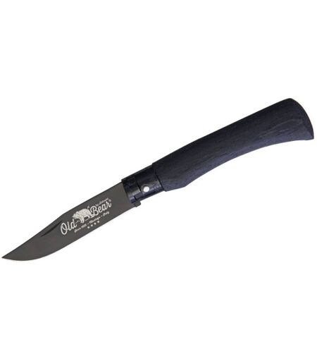 Un couteau Old Bear au look Total Black ! Affûtage réalisé manuellement à la pierre par un artisan Lame acier inox 420 revêtement PTFE noir Manche en bois d'ayous stratifié - coloris noir Virole en alu anodisé noir : verrouille la lame Taille XS, S, M, L ou XL au choix Poids : XS : 19g S : 25g M : 31g L : 43g XL : 46g Fabrication artisanale en Italie ...