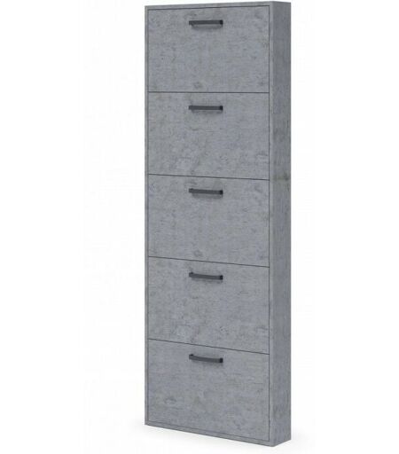 Argonauta - Meuble à chaussures slim 5 abattants bois mélaminé gris ciment h.180x65x15 cm
