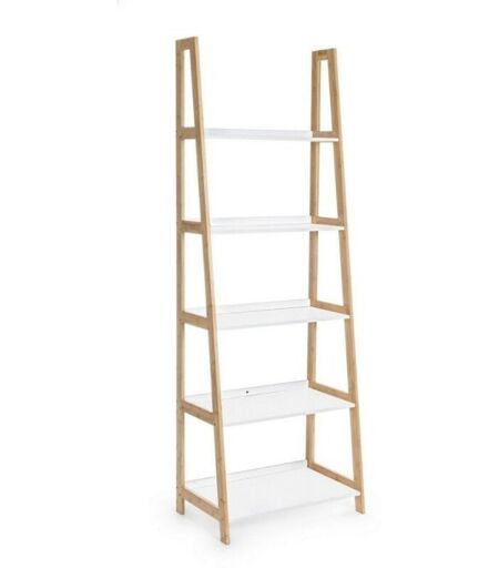 Structure bibliothèque en bois de bambou et étagères en mdf laqué blanc mat 5 étagères en MDF laqué blanc mat Dimensions: Largeur 62,5 cm Hauteur 187 cm Profondeur 3,8 cm En kit à assembler ...