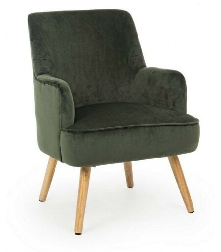 Fauteuil de salon vintage en velours vert foncé ADELINE 60x67x h79 cm Caractéristiques Structure en bois de pin et MDF Rembourrage en polyester, effet velours Couleur vert foncé Densité du rembourrage 25kg/m3 Pieds en bois de chêne, vernis nitrocellulosique, à assembler Dimensions Longueur 60cm Profondeur 67 cm Hauteur 79cm Hauteur d'assise 42 cm. ...
