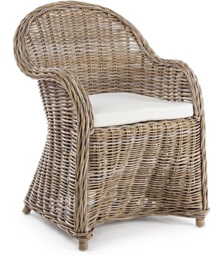 HELLIN Fauteuil en rotin naturel et coussin en coton - SAINT TROPEZ