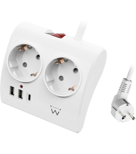 EWENT Multi-Plug de Desktop avec 2 prises Schuko et 2 ports usb-a et 1 port usb-c, de Interrupteur marche/arrêt, 3680 w, protection contre les surcharges,