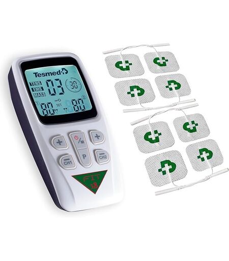 FONCTIONNE AVEC 8 ÉLECTRODES : PUISSANT ET POLYVALENT - c'est l'électrostimulateur musculaire idéal pour améliorer la forme physique générale grâce à 22 programmes, 40 niveaux d'intensité et 3 fonctions dans un seul appareil : EMS, TENS, Massage. Il fonctionne avec 8 électrodes, pour traiter une zone musculaire plus large ou deux zones musculaires en même tempsENTRAÎNEMENT ET TONIFICATION - grâce à la technologie EMS, Fit 5.8 est capable d'entraîner les fessiers, les abdominaux, les jambes, les bras, les pectoraux, les biceps, les triceps, etc. avec des programmes conçus pour obtenir les meilleurs résultats. Il offre une puissance maximale associée à un haut niveau de confortSOULAGEMENT DE LA DOULEUR - grâce à la stimulation TENS, il favorise la réduction de la douleur dès les premières applications. Indiqué pour les tendinites, cervicales, lumbagos et pour toutes les douleurs traitables par électrothérapie TENSMASSAGE RELAXANT - Tesmed Fit 5.8 propose des programmes de massages régénérants et relaxants pour la relaxation, la récupération musculaire, pour une sensation de bien-être retrouvéTECHNOLOGIE AVANCÉE TESMED - 6 programmes personnalisables qui vous permettent de « construire » votre propre programme en réglant la fréquence et la largeur d'impulsion souhaitées. Fonctionne avec 2 câbles quadripolaires, 2 canaux indépendants, écran LCD rétroéclairé. Le manuel fournit des informations sur les programmes et le placement des électrodes. Fonctionne avec 3 piles AAA (incluses) ...