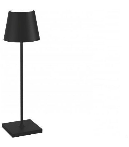 Lampe de table rechargeable Lampe de table rechargeable, comprenant une base de charge en contact, avec un corps en aluminium peint, un diffuseur en polycarbonate et une source lumineuse LED. Elle s'allume, s'éteint et s'atténue grâce à un bouton tactile sur le diffuseur et est équipée de la fonction de sélection de la température de couleur de la lumière (2200K-2700K-3000K). Indice de protection IP65. La durée de vie de la batterie est garantie pour au moins 12 heures. Les lampes avec finition feuille d'or, d'argent et de cuivre ne conviennent pas à une utilisation en extérieur. En raison de la technique utilisée dans le traitement des feuilles métalliques, l'aspect final de la lampe peut être différent. Toute anomalie atteste de la qualité et de l'unicité de chaque lampe et ne doit pas être considérée comme des imperfections. TAILLE Hauteur : 380 mm Diamètre : 110 mm ...