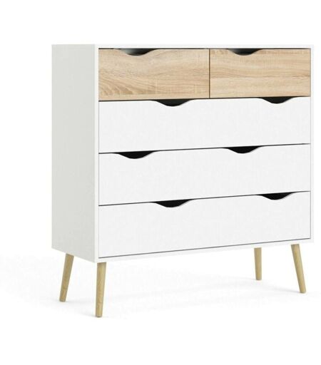 No Brand - Dmora Commode à cinq tiroirs, blanc et chêne, Mesures 98 x 100 x 39 cm, avec emballage renforcé
