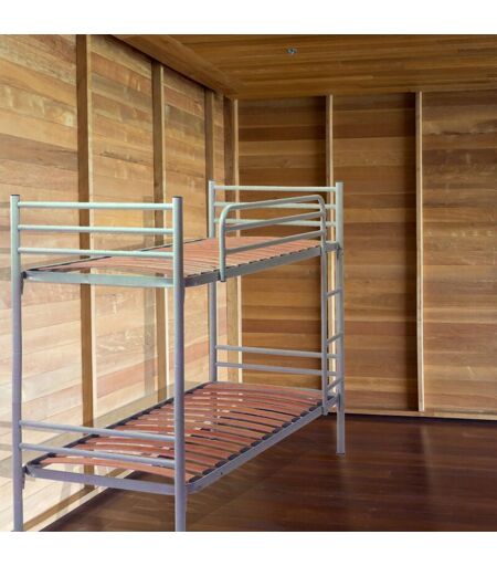 LIT SUPERPOSÉ SIMPLE BREGAGLIA - Lit superposé simple orthopédique à lattes avec structure en fer adapté au matelas 80x190 cm, Couleur Blanc. STRUCTURE - Structure métallique aux lignes carrées de 40 mm de diamètre, très robuste et résistante dans le temps - Deux étagères grillagées composées de 12 lattes en contreplaqué - Equipées d'échelle et de barre de sécurité pour la mezzanine, parfaites pour les espaces confinés avec encombrement ou pour enfants et familles nombreuses. MONTAGE - Le montage est simple et rapide : grâce aux outils de montage fournis en kit avec le produit et le livret d'instructions, vous pouvez assembler votre produit en quelques minutes. 100% MADE IN ITALY - La production 100% italienne garantit fiabilité et résistance - L'attention portée aux processus de production, le choix de matières premières de qualité et le souci du détail rendent ce lit solide, confortable et résistant dans le temps. MESURES DU PRODUIT - Convient pour un matelas simple de 80x190 cm ...