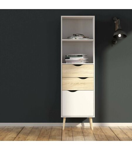 Dmora - Bibliothèque de style scandinave avec deux étagères, deux tiroirs et une porte, blanc et chêne, mesure 50 x 171 x 39 cm, avec emballage