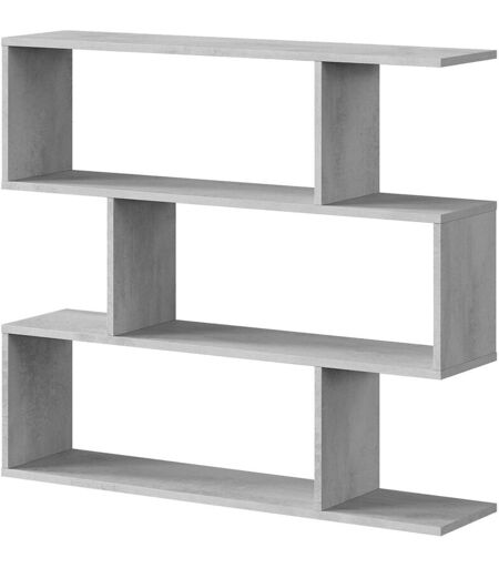 DMORA Librairie Hampton, Bibliothèque basse double face, Étagère à trois compartiments, Étagère de bureau moderne, cm 110x24h97, Gris béton, avec emballage