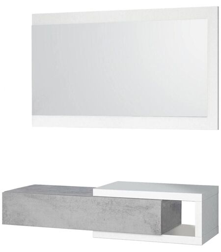 MEUBLE D'ENTRÉE MCALLEN - Couloir avec miroir, Meuble d'entrée avec tiroir, Videurs de poche pour appartements, cm 95x26h69, Blanc et Gris. STRUCTURE ET UTILISATION - Meuble d'entrée réversible suspendu moderne avec tiroir et miroir, c'est la solution idéale pour meubler élégamment et intelligemment votre entrée - Les éléments qui le composent le rendent parfait pour le hall d'entrée, grâce à la composition complète de tout le nécessaire pour votre entrée - L'étagère et le tiroir complétant la structure vous permettront de laisser vos petits objets rangés de manière ordonnée et toujours à portée de main. FOURNI AVEC KIT DE MONTAGE - Ce meuble est livré démonté avec un simple livret d'instructions de montage joint qui vous permettra de le monter rapidement et facilement - L'emballage est précis et adapté au meuble, afin de préserver l'élément d'origine meubles pendant le transport. CARACTÉRISTIQUES TECHNIQUES - Produit en panneau d'aggloméré mélaminé d'une épaisseur de 30 et 15 mm, ...