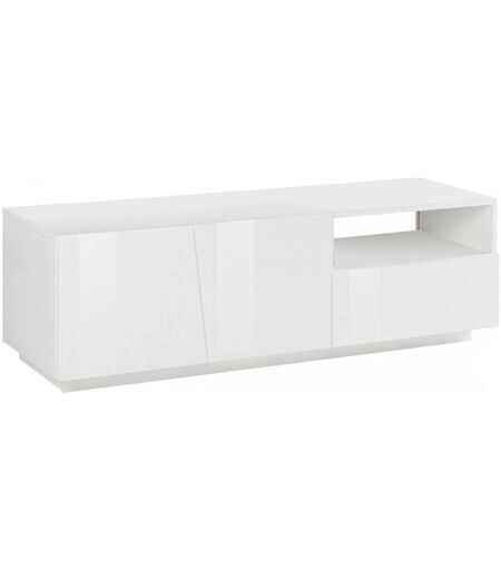 Dmora - Meuble tv de salon, Made in Italy, Meuble tv avec 2 portes et 1 tiroir, cm 150x43h46, couleur blanc brillant, avec emballage renforcé