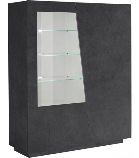 VITRINE MODERNE AVEC PORTE EN VERRE: Vitrine décorative élégante avec deux portes battantes avec détail en verre et quatre étagères en verre trempé à l'intérieur, structure entièrement en gris ardoise - Fonctionnelle et innovante, parfaite pour décorer des environnements avec des besoins d'espace avec un seul modèle élégant en phase avec le temps. STRUCTURE ET UTILISATION: Buffet bas moderne avec deux portes battantes, dont une avec des détails géométriques en verre, sans poignées pour rehausser son élégance - À l'intérieur, il est structuré avec des étagères en verre trempé parfaites pour placer vos objets d'affichage, livres et ornements - Éclairage LED blanc intégré système qui donne une touche de classe au produit - Il est possible de placer ce meuble à la fois dans le salon et à l'entrée, les mesures le rendent parfait pour meubler avec goût des environnements avec des besoins d'espace. PRATIQUE ET INNOVANTE : Cette vitrine se caractérise par des lignes simples et géométriques et ...