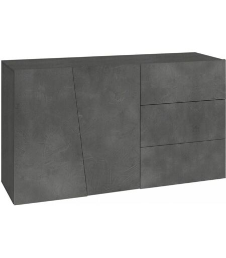 BUFFET MODERNE : Buffet au design géométrique avec deux portes et trois tiroirs sur le côté gauche, utilisable comme meuble TV de salon - Entièrement en gris ardoise. STRUCTURE ET UTILISATION: Buffet de salon pratique et peu encombrant structuré avec deux portes battantes sur le côté gauche et trois grands tiroirs sur le côté gauche, à l'intérieur avec des étagères dans la partie des portes - Les portes et les tiroirs sont sans poignées, tous deux équipés de solides charnières / guides métalliques - La structure est entièrement en gris ardoise - L'étagère du haut est parfaite pour accueillir votre téléviseur ou vos bibelots préférés. PRATIQUE ET INNOVANT : Son design moderne et élégant rend ce buffet à tiroirs parfait pour être placé dans un environnement moderne et lumineux, dans n'importe quelle pièce de votre appartement, du hall à la chambre : c'est le produit idéal pour ceux qui recherchent un article fonctionnel peu encombrant pour votre maison - La couleur gris ardoise, ...