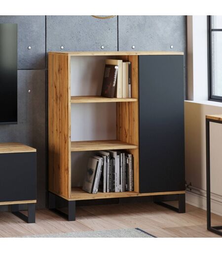 BUFFET MODERNE - Buffet de salon de style industriel avec une porte et deux étagères - couleur érable avec porte noire. STRUCTURE ET UTILISATION -Buffet pratique et peu encombrant avec 1 porte, qui peut être ouverte à gauche et à droite, et 2 étagères - Les étagères sont spacieuses et vous permettent de placer différents types d'objets, des livres aux bibelots pour enrichir le meuble - Possibilité de montage de la porte droite ou gauche, selon vos besoins. PRATIQUE ET INNOVANT - Grâce à ses lignes modernes et innovantes, il peut être utilisé aussi bien dans le salon qu'à l'entrée de la maison et peut être combiné avec tout type de mobilier - La structure métallique qui surélève le produit donne une touche d'originalité à le produit - La double couleur Erable et noir rend le produit moderne et toujours dans l'air du temps. FOURNI AVEC KIT DE MONTAGE - Ce produit est livré démonté avec un simple livret d'instructions de montage joint qui vous permettra un montage simple et rapide ...