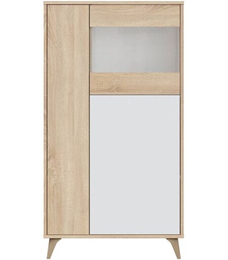 Dmora - Vitrine Daceved, Vitrine moderne à 3 portes, Buffet pour salon ou salon, Buffet haut avec étagères, 77x33h142 cm, Chêne et Blanc