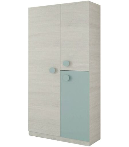 Dmora - Vestiaire Manchester, Armoire de chambre, Armoire à 3 portes et 3 étagères avec barre à vêtements, cm 90x52h200, Blanc et bleu sarcelle