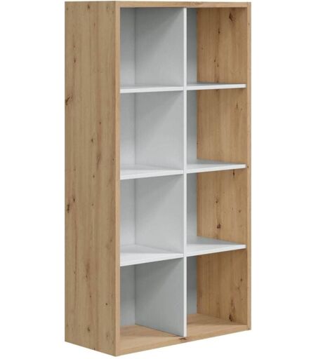 DMORA Librairie Sacramento, Bibliothèque réversible à 8 compartiments, Meuble tv multiposition, cm 72x33h137, Noeud effet chêne et Blanc, avec emballage