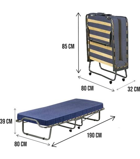 LIT PLIANT - Lit de camp Ä 15 lattes, Matelas inclus, Lit bÄbÄ peu encombrant, 100% Made in Italy, 80x190h39 cm, Housse incluse. STRUCTURE ET UTILISATION - Lit simple multifonctionnel pour invitÄs, adultes ou enfants, idÄal pour ceux qui ont besoin d'une solution complÄte et multi-positions pour leur chambre ou leur salon - Le lit transformable peut Ägalement Ätre utilisÄ comme canapÄ pratique - Les 15 lattes en bois sont soutenu par une base mÄtallique robuste - Le plateau du matelas est Äcologique, hypoallergÄnique, ergonomique et rÄsistant - Le systÄme de pliage du lit est simple et permet de le positionner en prenant peu de place - Les pieds et roulettes pliables qui l'accompagnent le permettent Ä positionner sans effort, il peut Ätre transportÄ comme une valise - Meuble fourni dÄjÄ montÄ, sans entretien supplÄmentaire, recouvert d'une housse pratique. FABRIQUÄ EN ITALIE - L'article est produit en Italie, avec l'utilisation des meilleurs matÄriaux, la plus haute qualitÄ et le ...