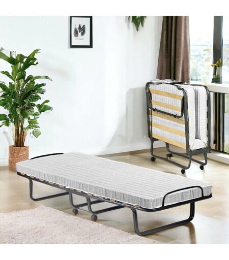 TALAMO ITALIA Lit pliant Deva, Lit pliant avec sommier à 12 lattes, Matelas inclus, Lit peu encombrant, 100% Made in Italy, 80x190h37 cm, Etui de protection sur