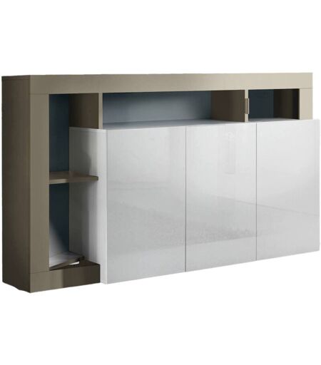 DMORA Buffet moderne à 3 portes avec compartiments ouverts, Made in Italy, Buffet de cuisine, Buffet design de salon, 146x42h93 cm, Blanc brillant et