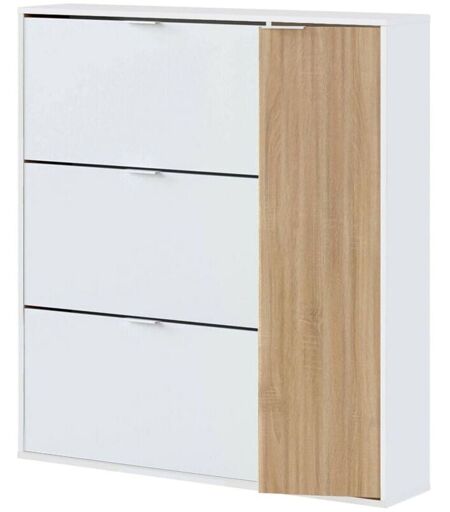 ÉTAGÈRE À CHAUSSURES - E'tagère à chaussures peu encombrante avec 4 portes, E'tagère à chaussures d'entrèe, Armoire à chaussures, 105x24h112 cm, Chène et Blanc Brillant. STRUCTURE ET UTILISATION - Meuble à chaussures moderne et peu encombrant avec trois portes battantes, à l'intèrieur il est possible de ranger jusqu'à 12 paires de chaussures grâce au compartiment à double capacitè - Meuble èlègant et fonctionnel parfait pour ètre placè dans l'entrèe, le couloir , buanderie, salle de bain, placard, garage, chambre, balcon, terrasse ou entrèe - Portes èquipèes de charnières mètalliques solides et durables - Armoire ègalement parfaite pour ranger objets et outils de travail. CERTIFICATIONS ET INNOVATIONS - Article d'ameublement design certifiè PEFC, parfait pour meubler un environnement moderne et lumineux: le produit idèal pour ceux qui recherchent un produit fonctionnel et peu encombrant pour leur maison ou leur appartement - Garantie de 2 ans à partir de la date d'achat - Livrè ...