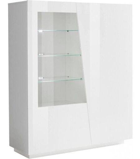 Dmora - Vitrine Dkruni, Buffet avec porte vitrée, Meuble de salon polyvalent avec lumière led, 100% Made in Italy, cm 120x43h146, Blanc brillant