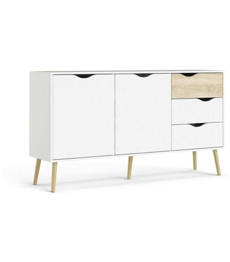 Dmora - Buffet avec deux portes et trois tiroirs, blanc et chêne, Dimensions 147 x 81 x 39 cm