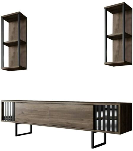 MEUBLE TV - Buffet de salon, Armoire basse pour TV, Base murale de rangement, 180x30h48 cm, Noyer et Noir. STRUCTURE ET UTILISATION - Meuble TV moderne, innovant et fonctionnel - Le choix de la structure interne qui compose cet ensemble de salon rend le design du meuble moderne, polyvalent, pratique et peu encombrant - L'étagère supérieure est parfaite pour accueillir votre TV, chaîne stéréo ou vos décorations préférées - Meubles multifonctionnels parfaits pour meubler des environnements exigeants en espace. QUALITÉ ET DESIGN - Meuble au design moderne et élégant, parfait pour meubler un environnement contemporain et lumineux - Idéal pour ceux qui recherchent des solutions fonctionnelles et peu encombrantes, ce produit est parfait pour les maisons et les appartements de toutes tailles - Garantie de deux ans à compter de la date d'achat. CARACTÉRISTIQUES TECHNIQUES - Accessoire d'ameublement polyvalent, conçu pour une intégration facile avec d'autres meubles - Emballage résistant, ...
